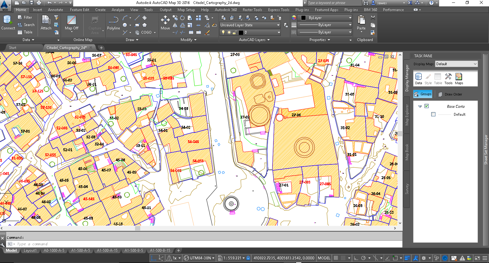 Il sistema permette di andare dal generale al particolare; i vari layer si attivano alle scale opportune; nel caso della cittadella di Erbil per la parte che riguarda gli edifici, al momento sono implementati i layers Blocco e Plot, ma si potrebbe aggiungerne degli altri per scendere fino al singolo particolare: Cittadella->Blocco->plot->Edificio->piano->stanza->arredo……